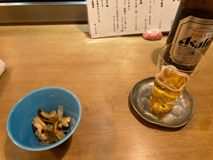 とりあえず乾杯は大好きなスーパードライの瓶ビールで。
