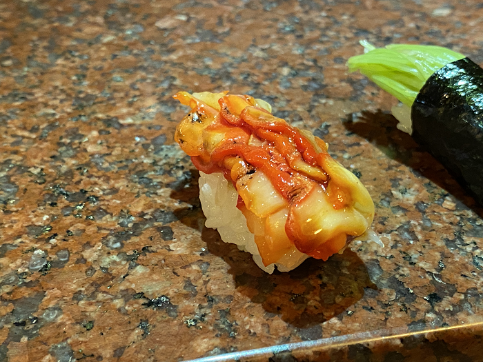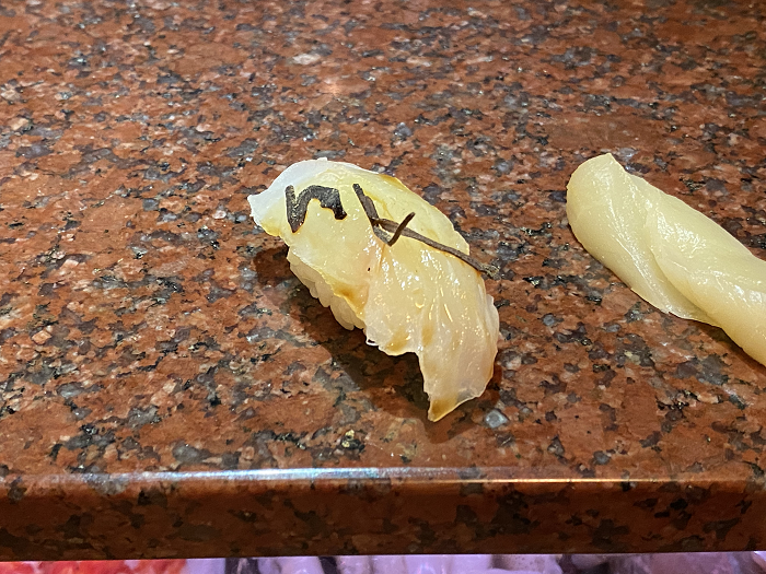 ナガニシって貝(別名:夜泣き貝)のお寿司です。