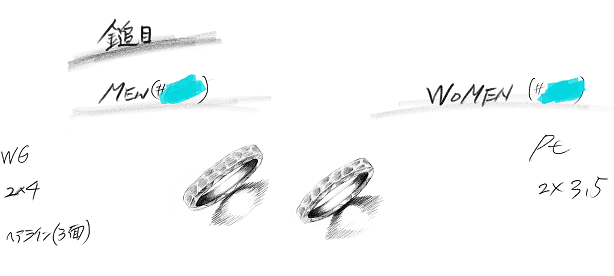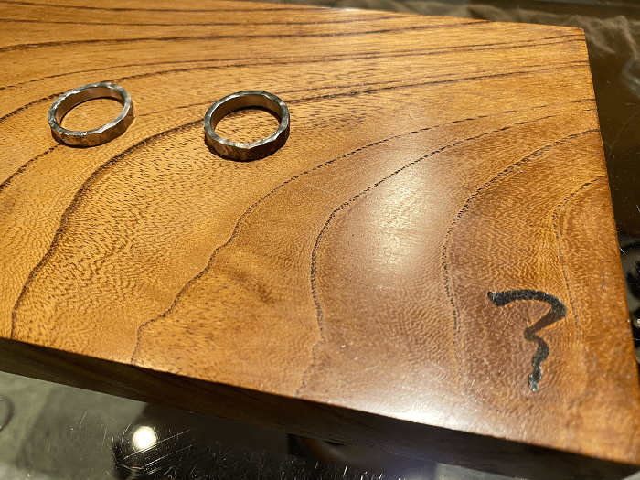 ボクらは槌目デザインの指輪を注文。