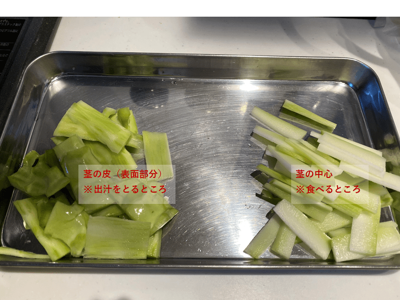 ・ブロッコリーの茎も加えて少し煮立たせる。