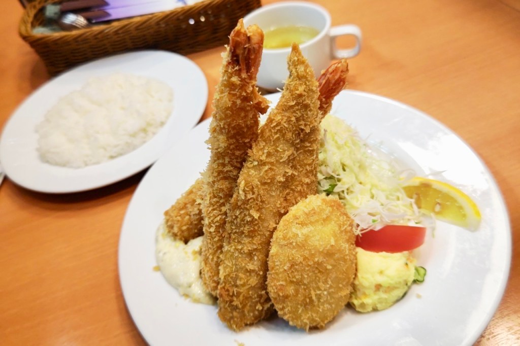 ちゃちゃはミックスフライ(ライス付き)を注文。