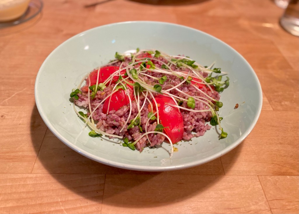 これも赤ワインなのかなぁ、ご飯が赤い。