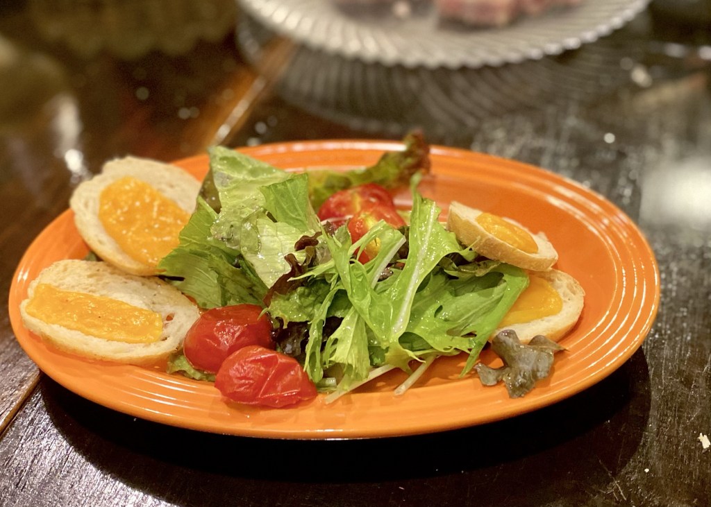 サラダのフルーツトマトは加熱されていて
