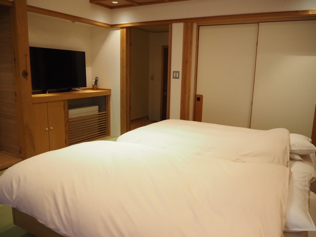 引き戸を開けると、手前の部屋にベッドが2つ。