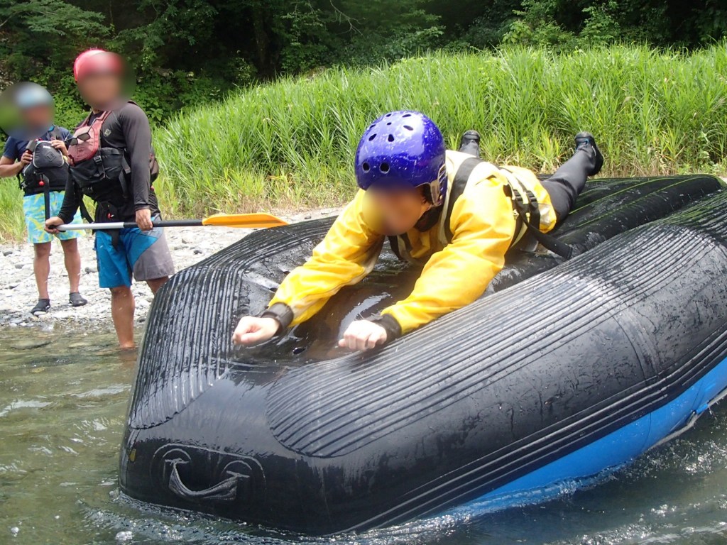 ラフティング体験の途中では